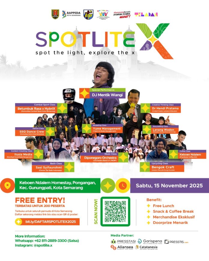 Dengan mengusung tema “Spot the Light, Explore the X”, SPOTLITE X dirancang menjadi wadah lintas komunitas bagi anak muda Semarang untuk berekspresi, berjejaring, dan menemukan potensi diri.